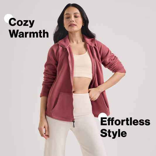 Cozy Sherpa Jacket with Zippered Front-NYLE701-Pink
