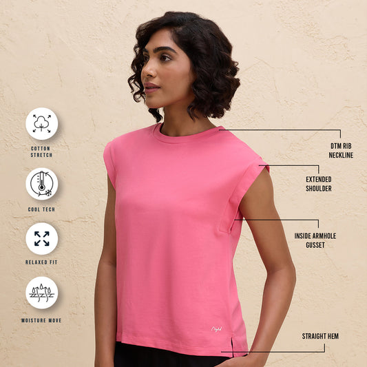 Extended Shoulder Cotton Tank Top with 2 Degree Cooling Tech-NYLE514-Pink