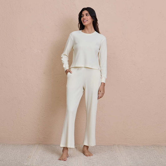Waffle Lounge Pajamas in Flattering Fit-NYS501-Off White