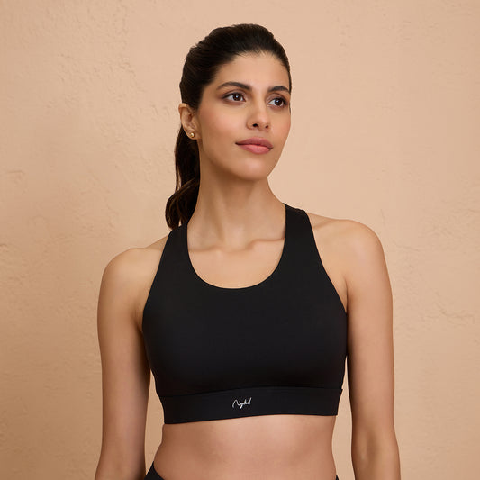 Nykd By Nykaa Ultimate Cross Back Sports Bra with Removable Cups NYK909 Black
