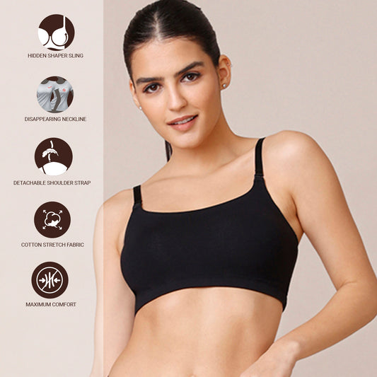 Nykd By Nykaa Easy Breezy Slip on Bra PO2-NYB165-Black and Sand