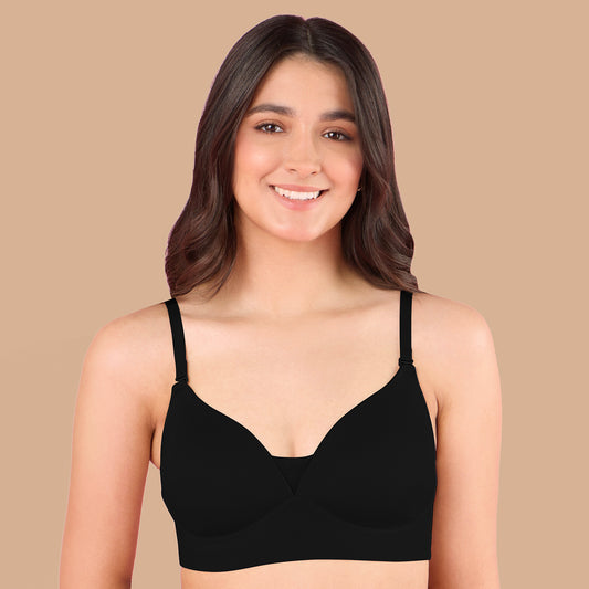 Nykd By Nykaa Infinity Edge Perfect Shaping Padded Non Wired T-Shirt Bra NYB202 Black