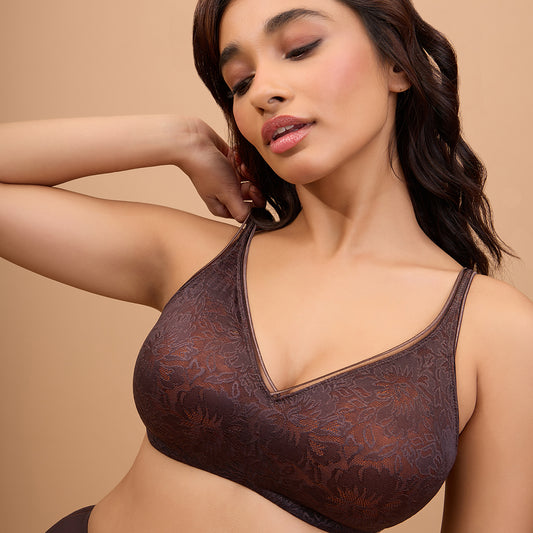 Nykd by Nykaa Shape & Sculpt Lace Padded Bra-NYB187-Brown