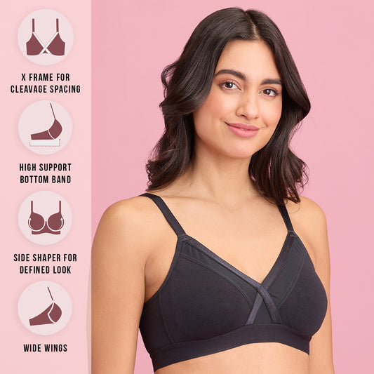 X-Frame Cotton Support Bra-NYB191-Black