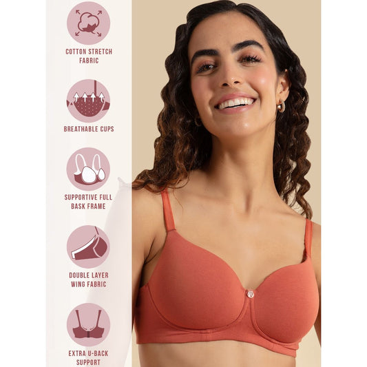 Nykd by Nykaa Super Soft Luxe Modal Padded Non Wired 3/4th Coverage T-Shirt Bra NYB013 Carrot