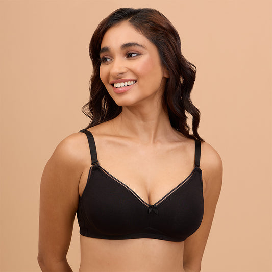 Cotton Non Padded Non Wired Everyday Comfort Bra-NYB388-Black