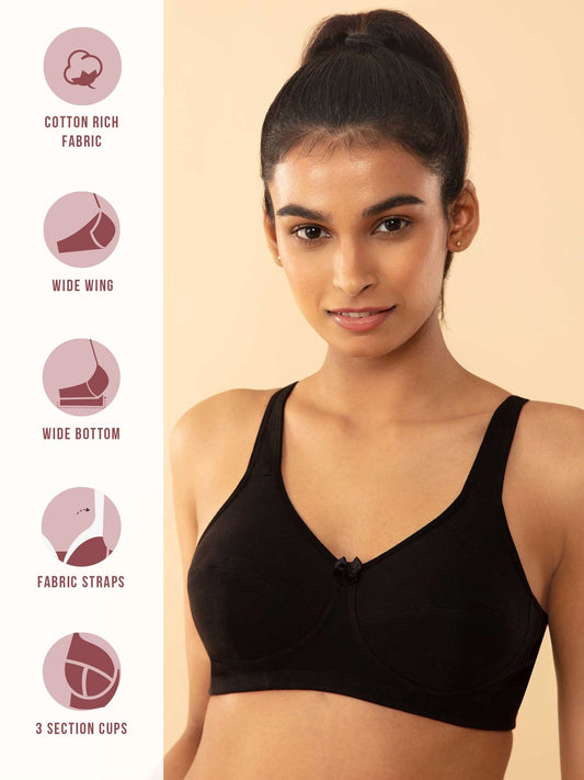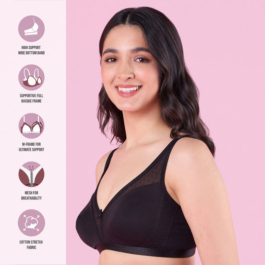Glass Neckline Cotton Support Bra-NYB280-Black