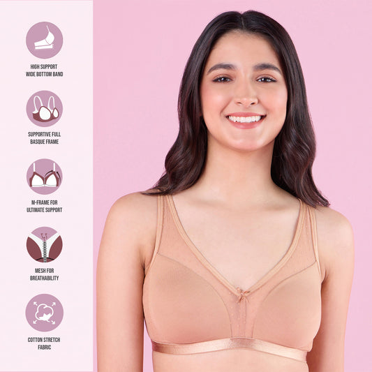 Glass Neckline Cotton Support Bra-NYB280-Tan