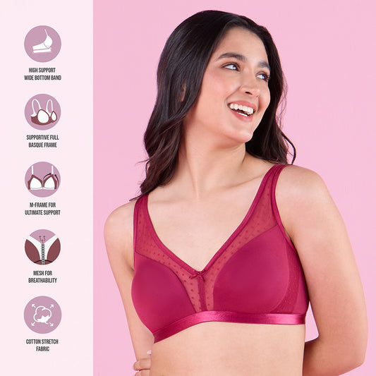 Glass Neckline Cotton Support Bra-NYB280-Berry