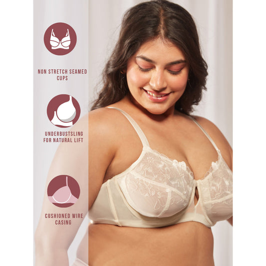 Floral Mesh Underwired Non-padded Lace Bra-NYB221-White