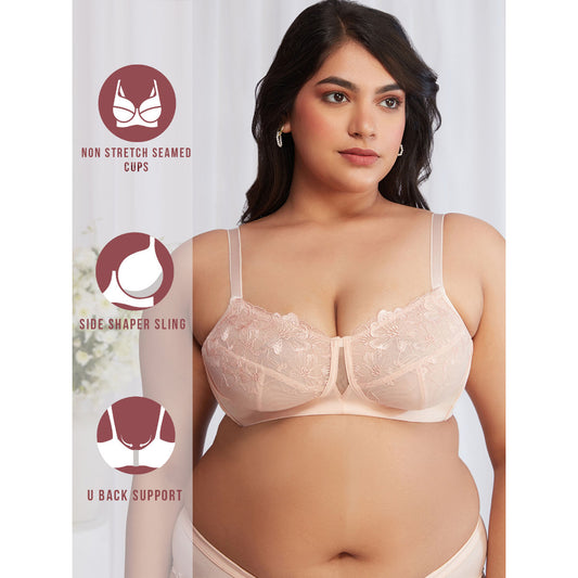 Floral Mesh Wirefree Non-padded Bra-NYB230-Peach