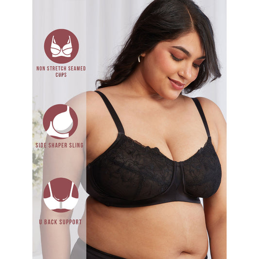 Floral Mesh Wirefree Non-padded Bra-NYB230-Black