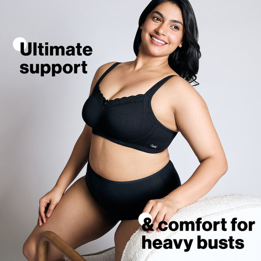 Nykd By Nykaa Everyday Cotton M-Frame Bounce Control Non-Padded Non-Wired Bra NYB101 Black