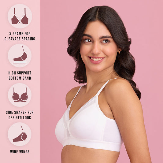 Nykd By Nykaa Everyday Cotton M-Frame Bounce Control Non-Padded Non-Wired Bra NYB101 White