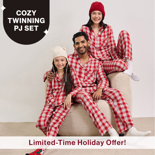 Nykd By Nykaa Holiday Special Matching Twinning FamJam Pyjama Set of 2 for Boys & Girls in Super Soft Cotton - NYS952 Red & White