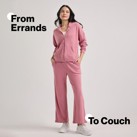 Nykd By Nykaa Luxe Feather Knit Waffle Wide Pants - Jet Set Knit collection Nys948-Pink