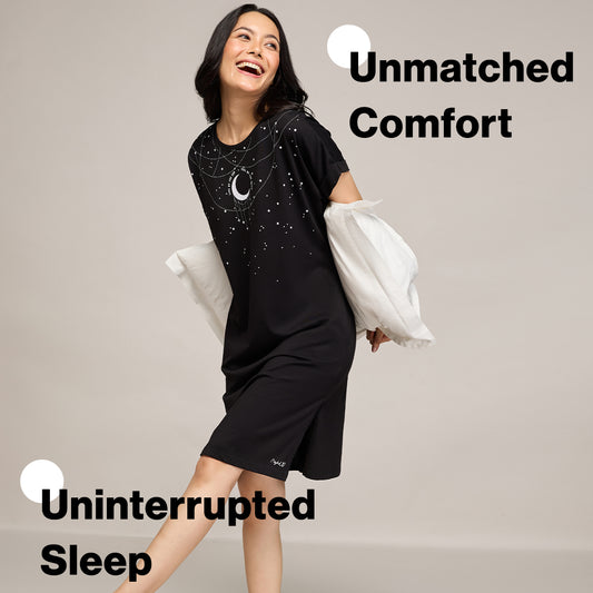 NYKD BY NYKAA BUTTERY SOFT MODAL COTTON DRESS WITH EXTENDED ROLL UP SLEEVES NYS929 BLACK