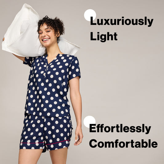 NYKD BY NYKAA BREEZY RAYON SHORTS COORD SET WITH FLATTERING HIGH LOW HEM TOP NYS930 NAVY BLUE