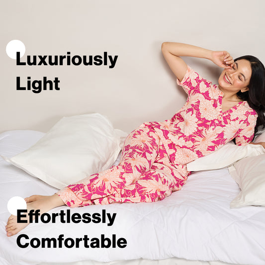 NYKD BY NYKAA BREEZY RAYON PYJAMA COORD SET WITH FLATTERING HIGH LOW HEM TOP NYS933 PINK