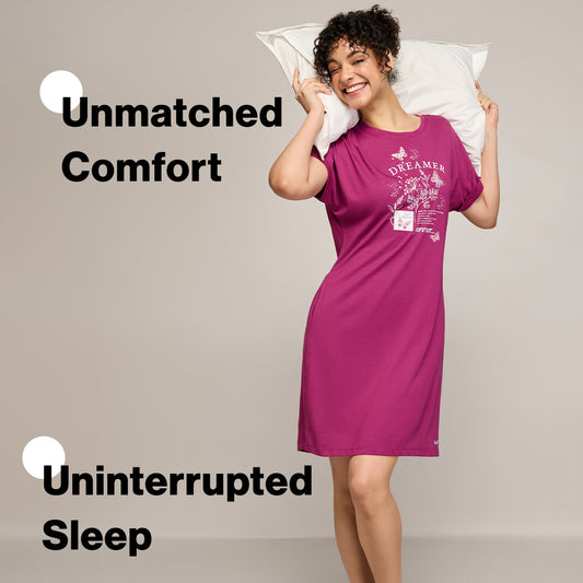 NYKD BY NYKAA BUTTERY SOFT MODAL COTTON SHORTS COORD SET WITH ROUND NECK GRAPHIC TEE NYS940 Purple