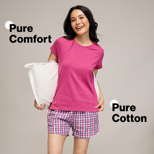 Nykd By Nykaa Essential Cotton Shorts Coord Set With Crew Neck Cotton Knit Tee Nys942 Grape