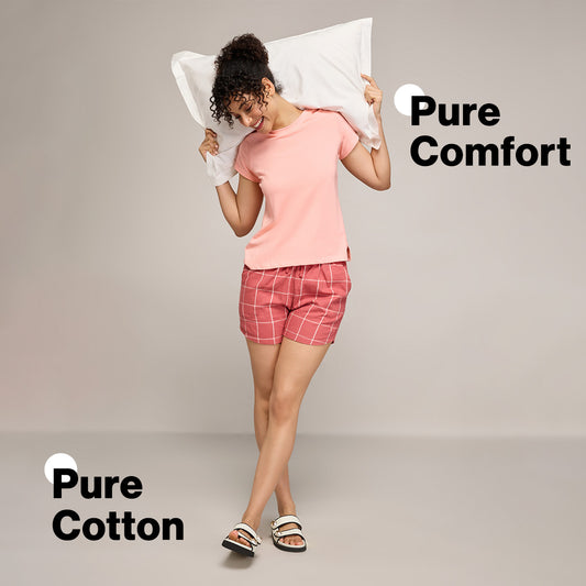 Nykd By Nykaa Essential Cotton Shorts With Pockets & Adjustable Waist Nys914 Brick Check