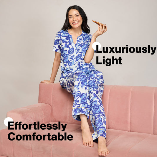 NYKD BY NYKAA BREEZY RAYON PYJAMA WITH ELASTICATED WAIST & POCKETS NYS142 BLUE