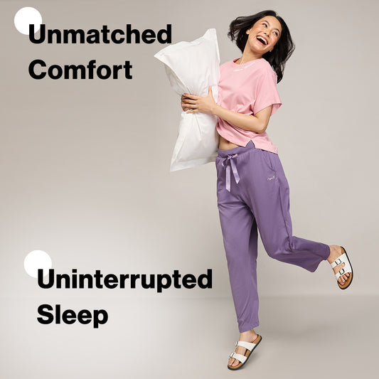 NYKD BY NYKAA BUTTERY SOFT MODAL COTTON PYJAMA WITH CLEAN ELASTICATED WAIST & POCKETS NYS911 PURPLE
