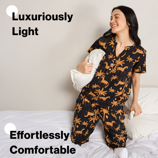 NYKD BY NYKAA BREEZY RAYON PYJAMA COORD SET WITH FLATTERING HIGH LOW HEM TOP NYS933 CHARCOAL