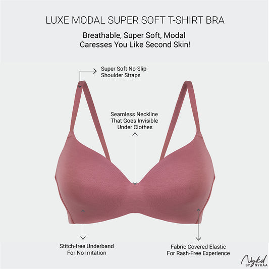 Nykd By Nykaa Super Soft Luxe Modal Padded Cushioned Wire T-Shirt Bra NYB218 D Rose