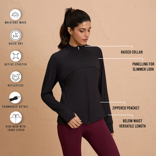 Dry Fit Jacket for Running, Fitness & Sport-NYK701-Black
