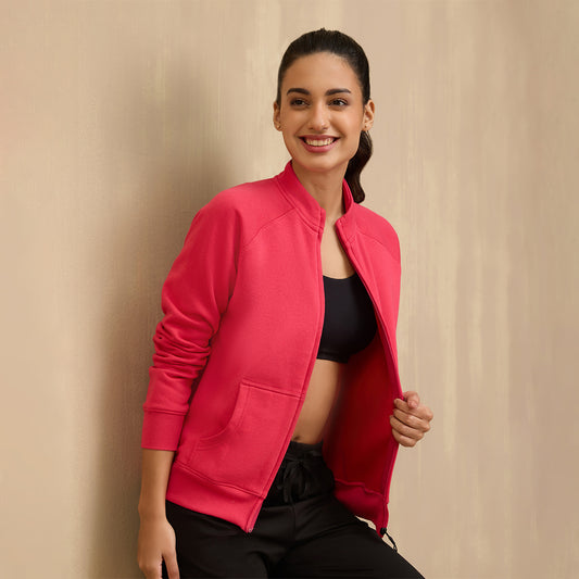Cozy FleeceZippered Jacket-NYLE704-Red