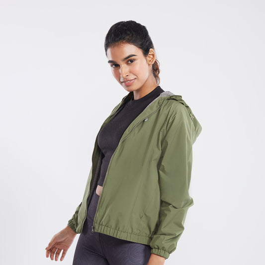 Light Weight Hooded Jacket with Contrast Lining-NYK308-Olive