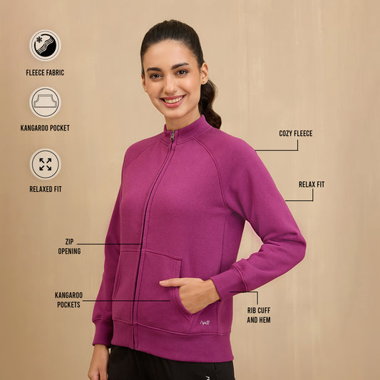 Cozy FleeceZippered Jacket-NYLE704-Maroon
