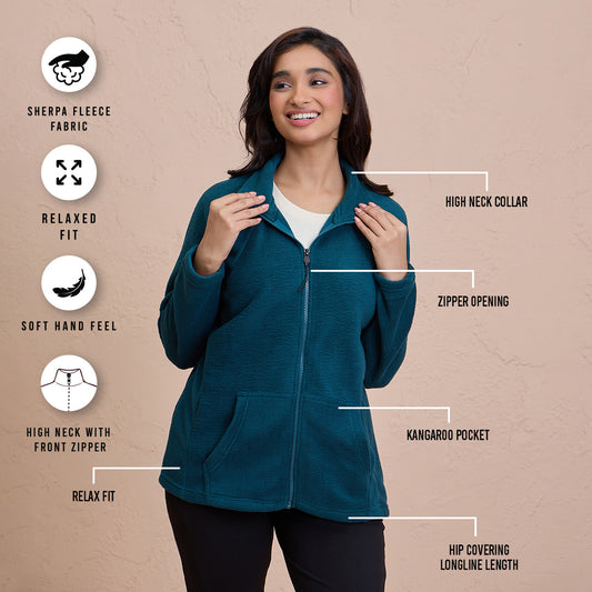 Cozy FleeceZippered Jacket-NYLE704-Green