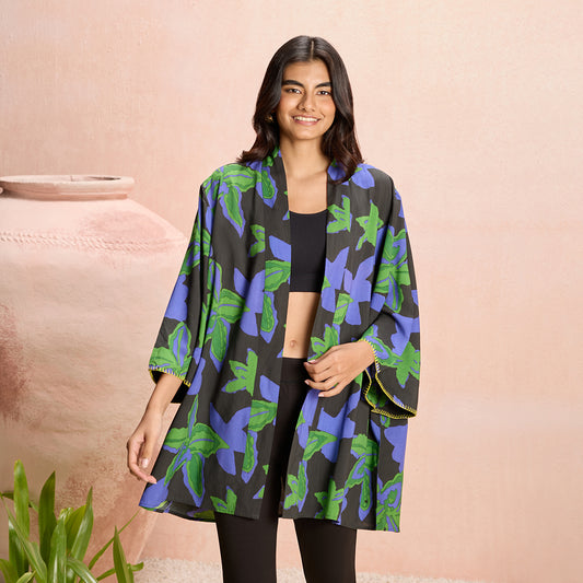 Jodi X Nykd Modal Shrug Jacket with Embroidered sleeves-NYJ10-Green Floral Print