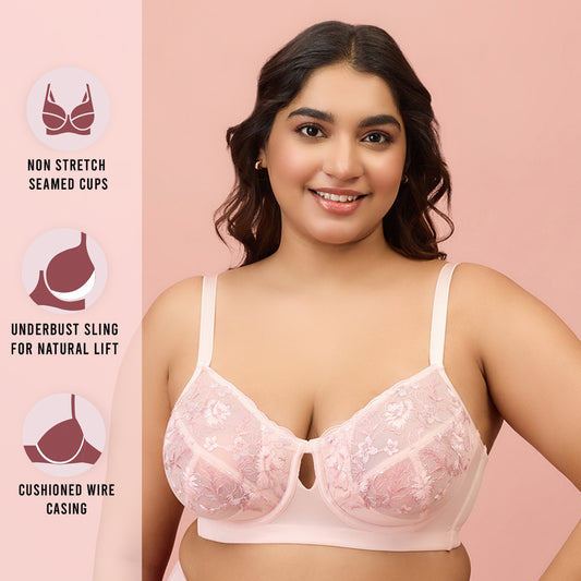 Embroidered Floral Lace Wired Bra-NYB292-Pink