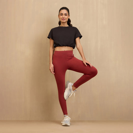 Ultimate Comfort Cotton Stretch Flare Leggings with Anti Slip Waist & Pockets NYAT503 Wine