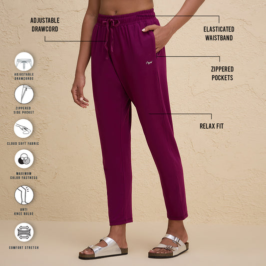 Ultimate Comfort Cotton Travel Pants in Relaxed Fit with Spill Safe Zip Pockets NYAT502 Grape