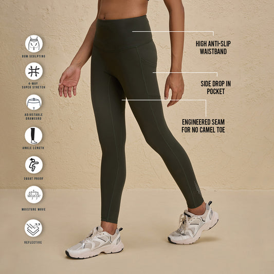 Luxe Leggings in Cloud Soft & Squat Proof Fabric with Anti Slip Waist & Booty Sculpting NYK261 Olive