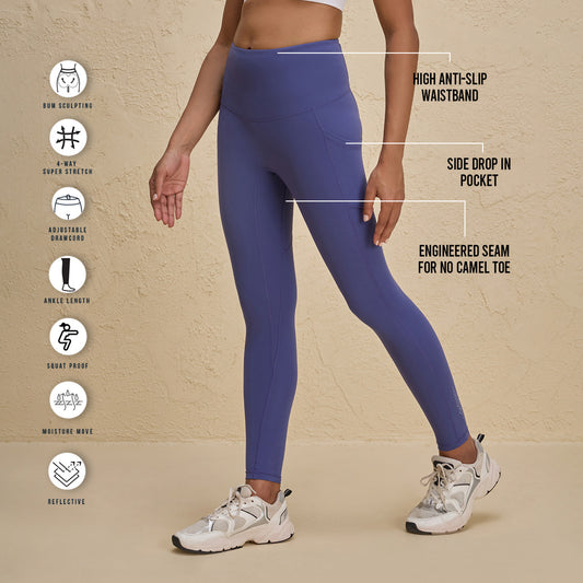 Luxe Leggings in Cloud Soft & Squat Proof Fabric with Anti Slip Waist & Booty Sculpting NYK261 Blue