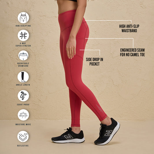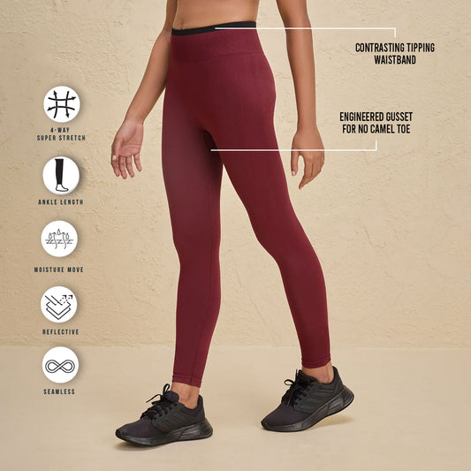 Seamless Game Changer Ankle Length Flattering Booty Leggings-NYK406-Maroon