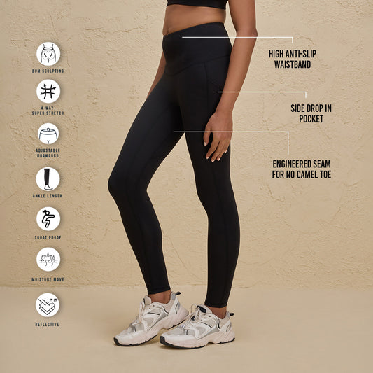 Luxe Leggings in Cloud Soft & Squat Proof Fabric with Anti Slip Waist & Booty Sculpting NYK261 Jet Black