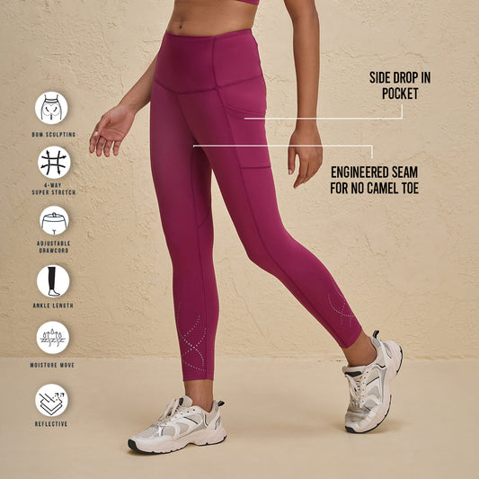 Flattering Ankle Length Legging with Pockets and Print detail-NYK299-Grape