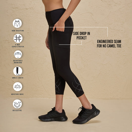 Flattering Ankle Length Legging with Pockets and Print detail-NYK299-Black
