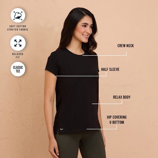 Super Comfy Cotton Stretch Classic Solid T-Shirt-NYLE216-Black