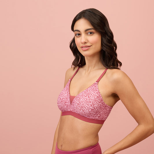 Printed Padded Wireless T-shirt Bra-NYB219-Marble Mirage-Rose