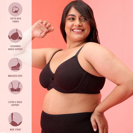 Nykd By Nykaa Iconic Cotton Low Back Padded Non-Wired 3/4th Coverage T-shirt Bra NYB252 Black