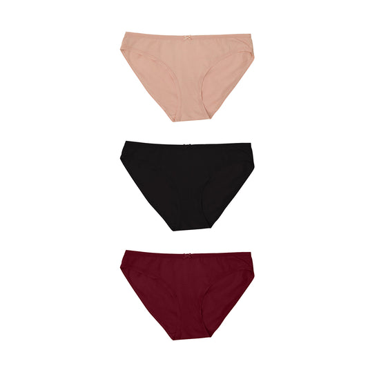 Pack of 3 No visible elastic Low rise Bikini with Full rear coverage-NYP114-Multi-Color