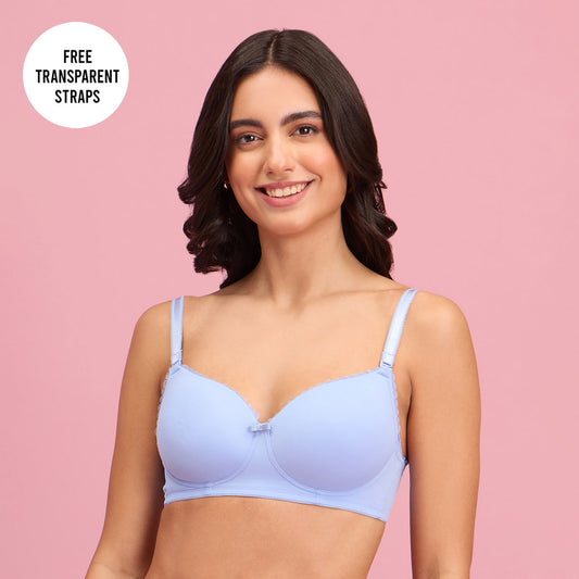 Nykd by Nykaa Breathe Cotton Transparent Back Padded Non Wired T-Shirt Bra NYB007 Rose